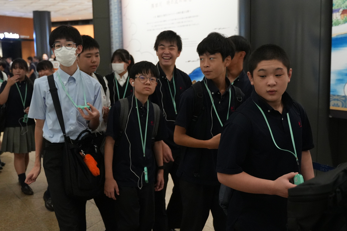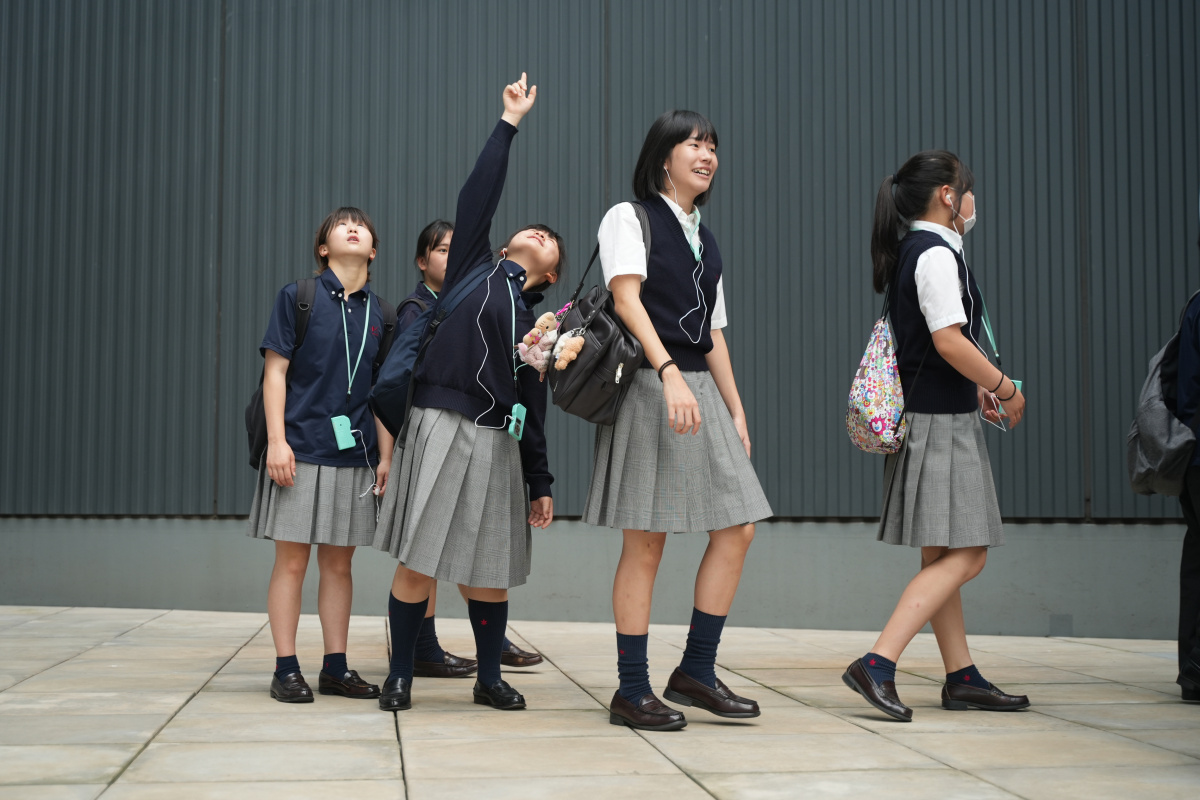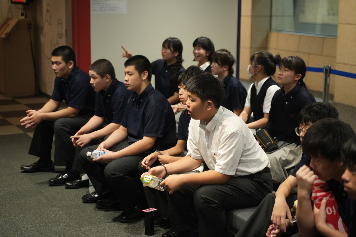 午前中東京スカイツリーに行き、見学ツアーを行いました。スカイツリーの役割や形状、成り立ちなどを案内していただきました。安全のための耐震構造や、鉄骨の接合部に高い強度を確保するための溶接技術の説明など、生徒たちは質問しながら熱心に聞いていました。