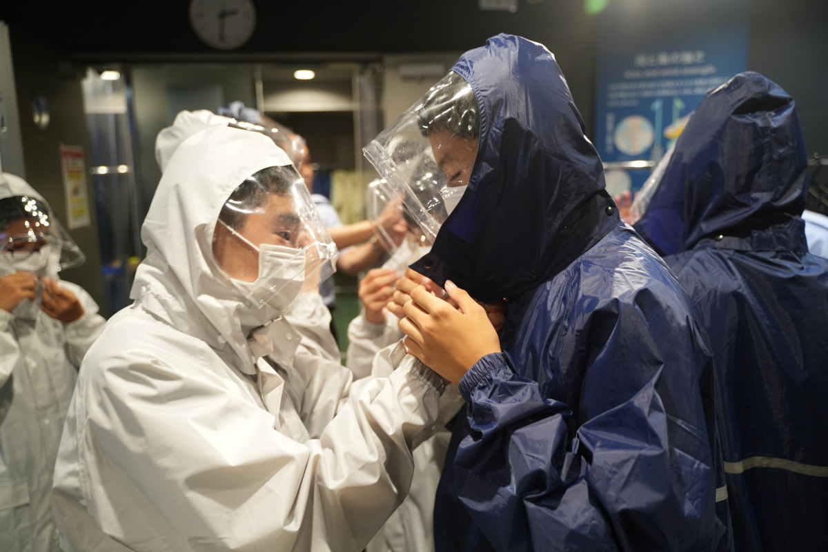 午後は墨田区にある本所防災館に移動し、地震体験・水害体験(集中豪雨時の浸水)・暴風雨体験・煙体験を行いました。各体験の前には地震発生時に身を守る姿勢や、火災発生時の煙の広がり方と煙を避ける避難の仕方などの指導がありました。実際に災害時と同じ状況を体験することで災害の怖さを知り、防災の意識を高めました。